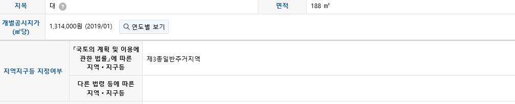 이렇게 하면 지목, 면적, 개별공시지가까지 한번에 확인이 가능합니다.